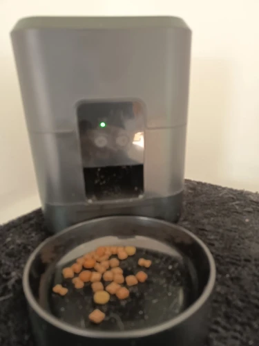 The machine is nice and spacious, however, there is a problem with dispensing food portions. When it is powered by batteries, it stops connecting to the app and dispenses multiple times the given amount according to its own discretion (sometimes it dispenses 2 portions of food, and other times 6). The cable connects to the application and is more obedient.