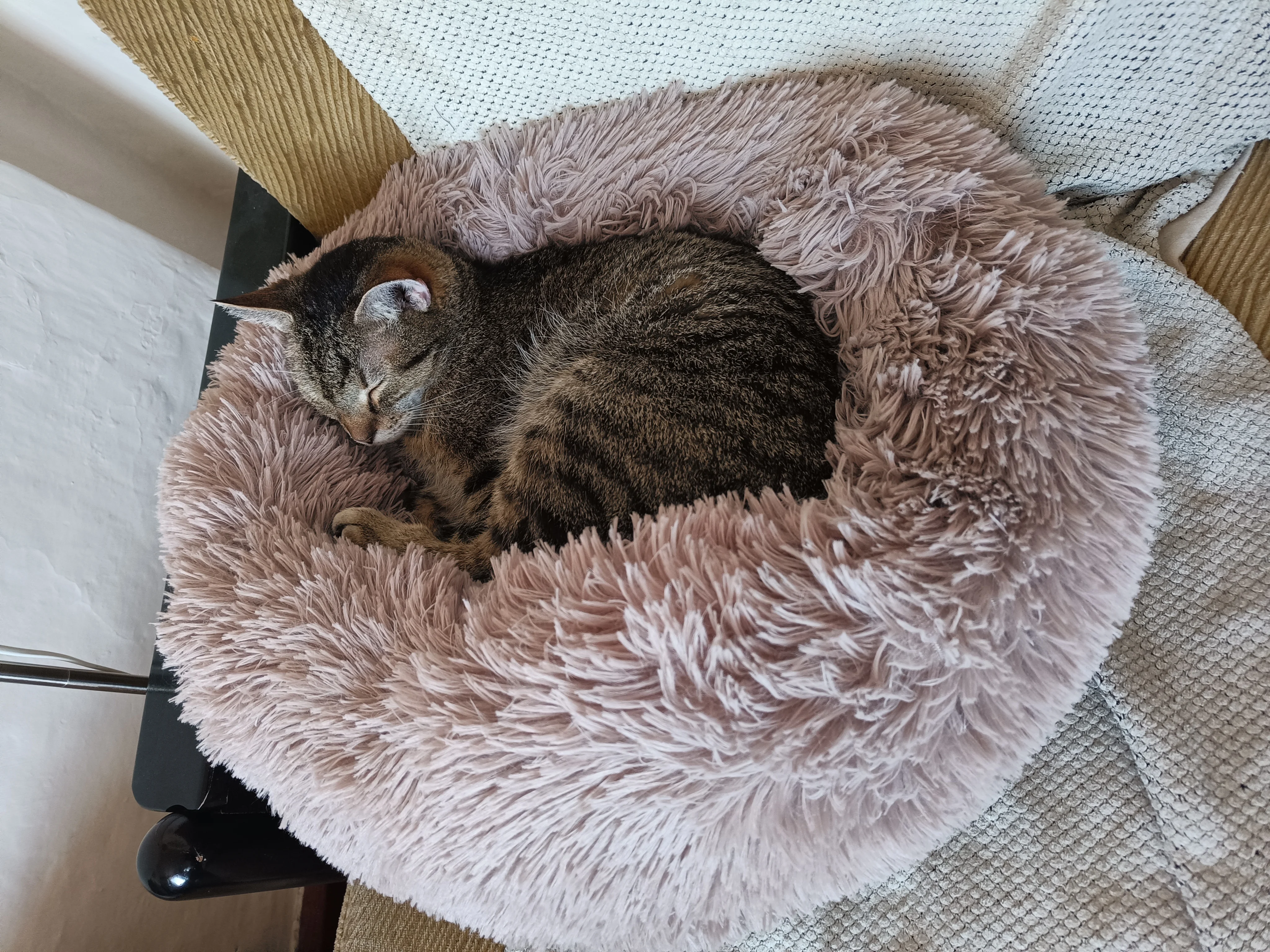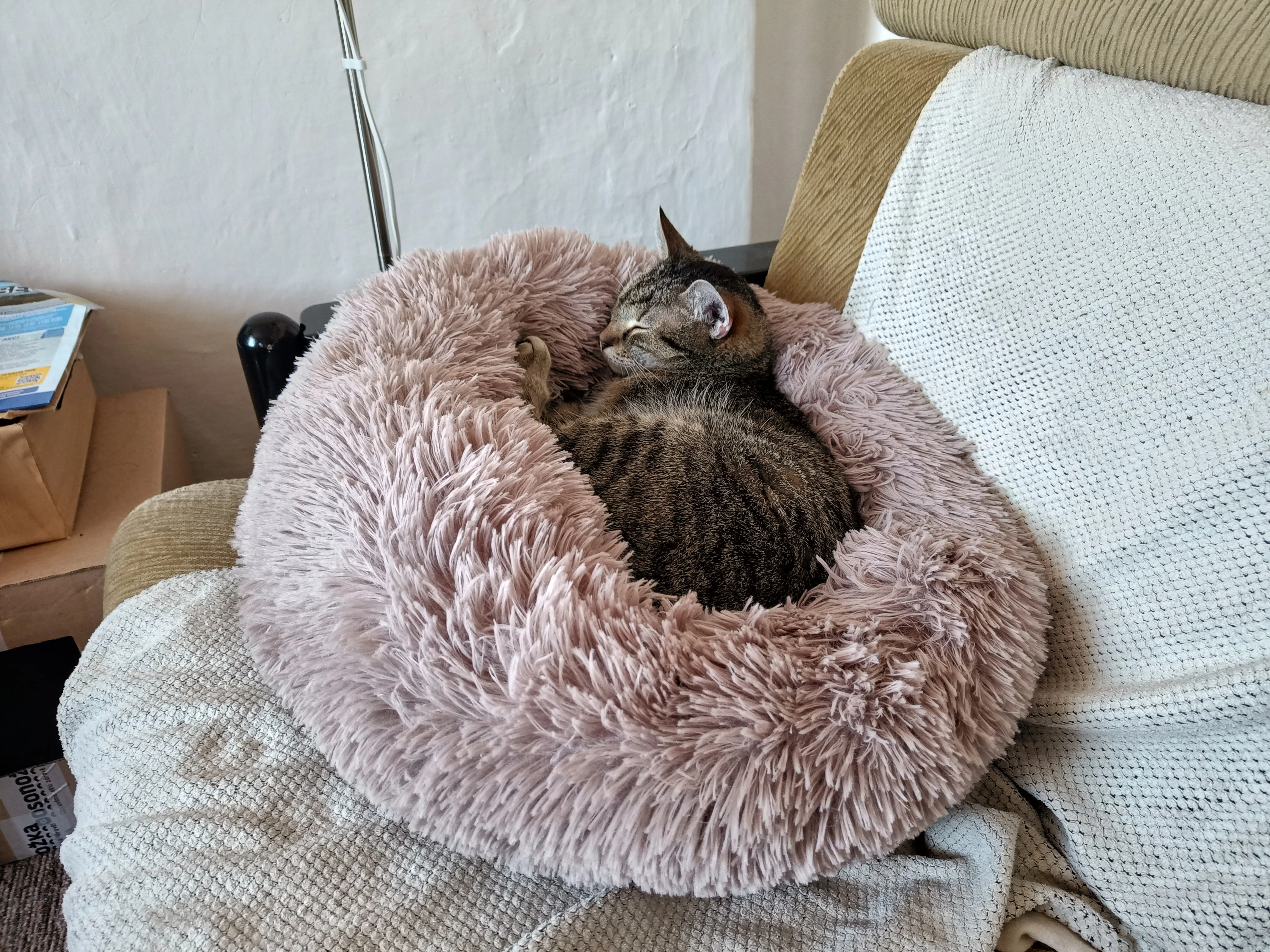 Nas fotos, parece que é um pelíšek um pouco maior do que a realidade. Leží v něm drobner kocour.