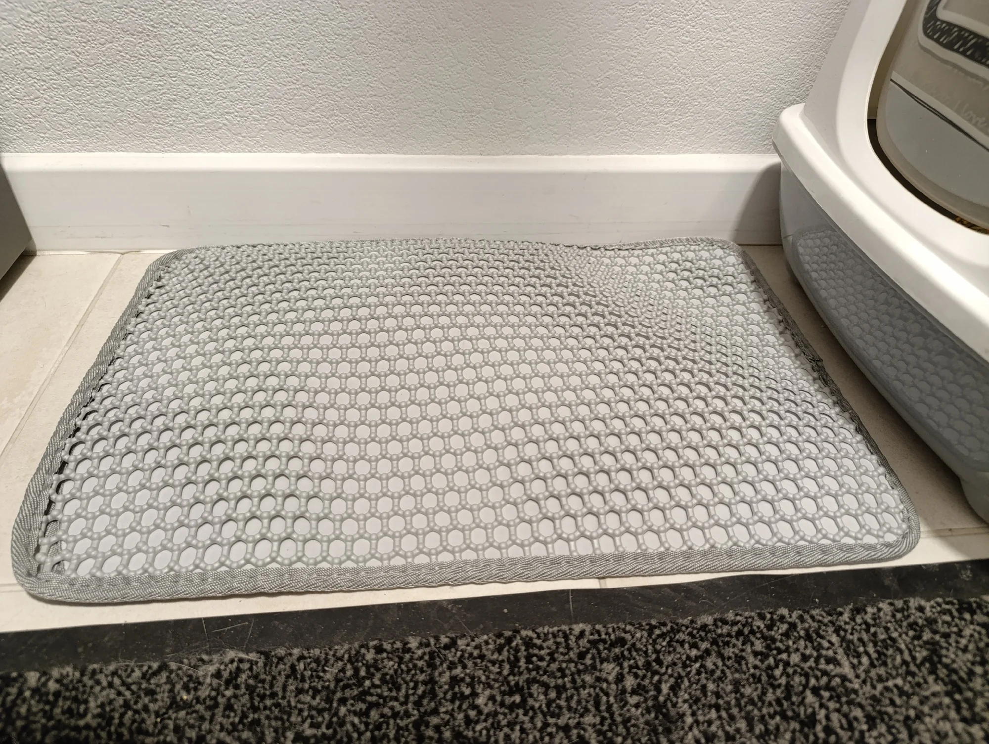 Keep your home clean and free of scattered litter with this double-layer cat litter mat! Made with waterproof and non-slip materials, it's ideal for placing next to the litter box. The perforated top layer allows the litter to fall directly onto the base, where it can be easily reused or disposed of. Its washable and durable design ensures hygiene and longevity. Perfect for all types of litter boxes. Offers comfort to your cat's paws and peace of mind for you. No more cleaning litter every day!