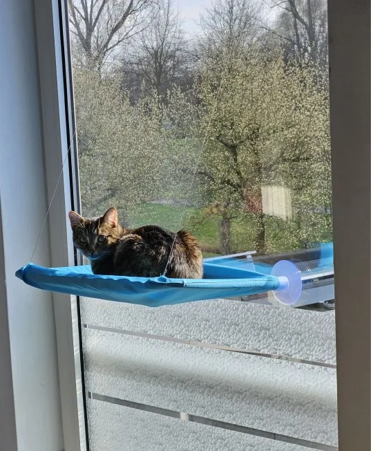 Made with durable and breathable fabric, it supports up to 20 kg, making it ideal for cats of all sizes. It can be easily attached to chairs, tables, or railings, creating an elevated space where your cat will feel protected. In addition to being practical, it is washable and foldable, taking up little space when not in use.