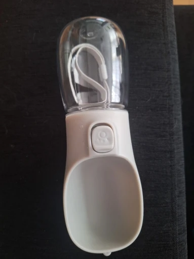 The bottle has a water reservoir and a built-in drinking trough in the shape of a shell or channel, which makes it easy for the animal to drink directly. Simply press a button (or squeeze the bottle, depending on the model) to release the water into the drinking compartment.