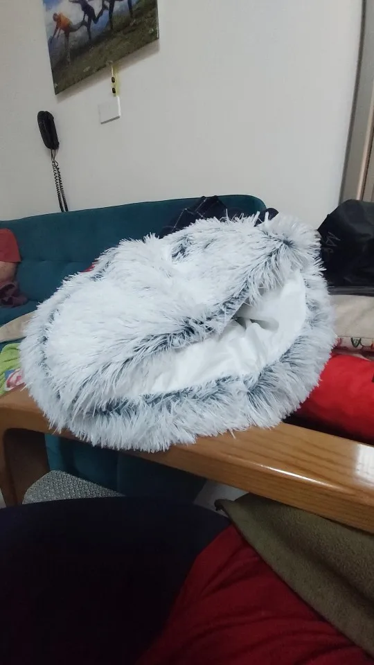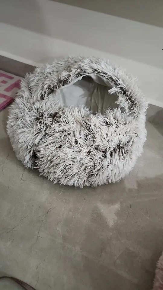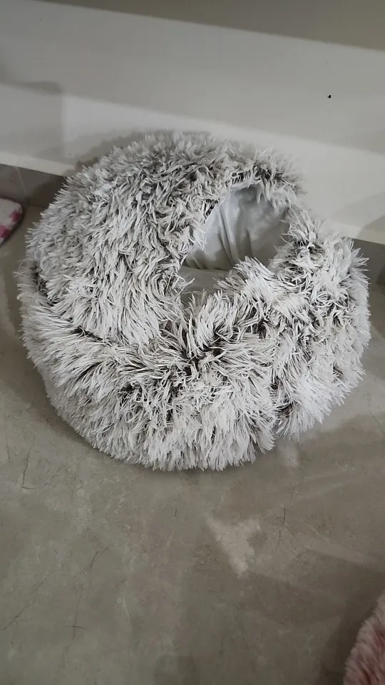 Welcome your pet with all the affection they deserve! This plush hooded bed is perfect for cats and small dogs who enjoy comfort and security. The all-season plush round pet bed with hood is a donut-shaped nest for cats and small dogs.