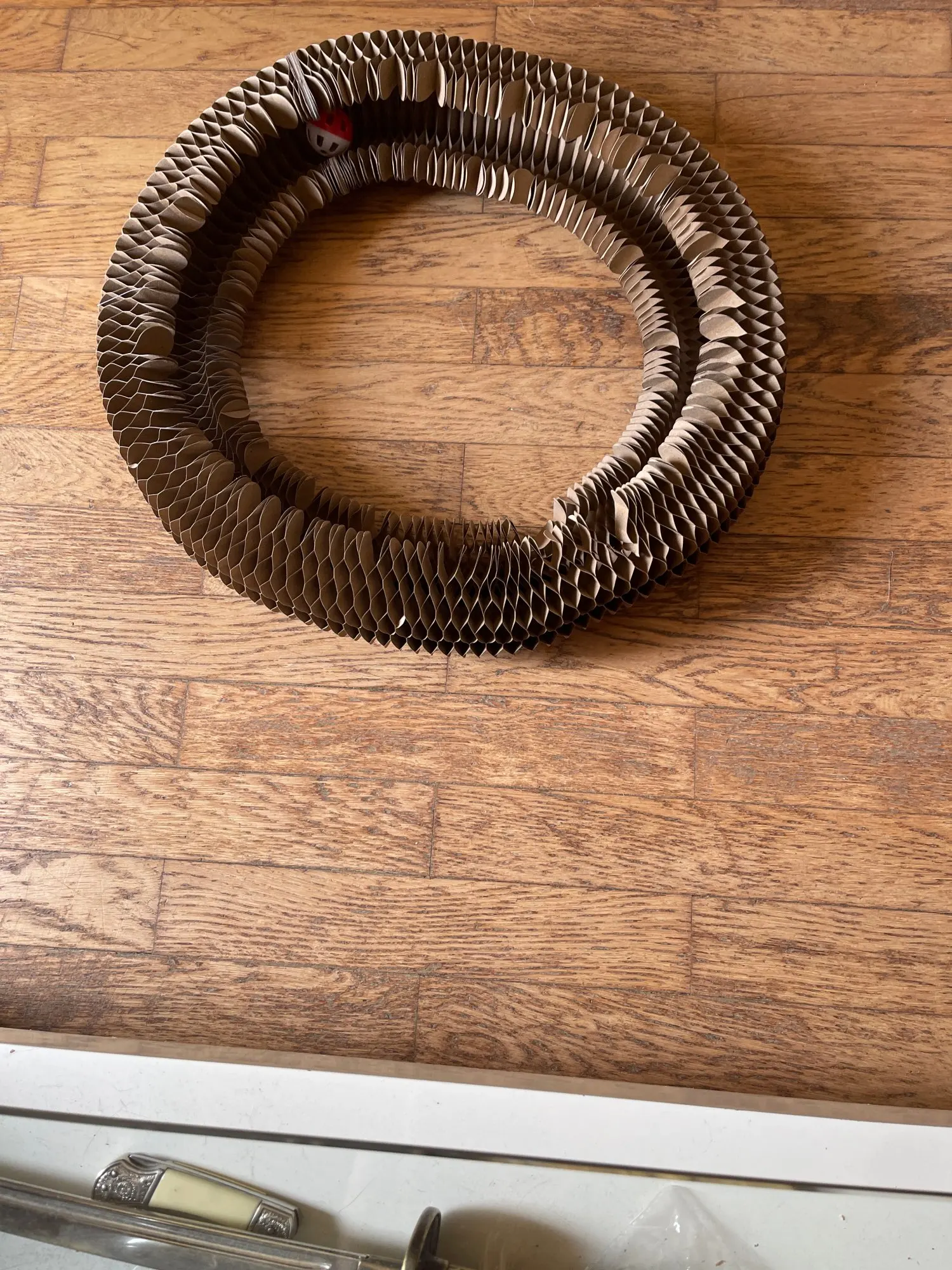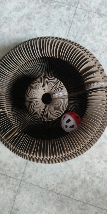 Interactive toy in the shape of a round, wavy tunnel, ideal for cats to scratch, explore, and have fun. The innovative design sparks feline curiosity, promoting physical activity and well-being. It functions as a scratching post and tunnel all in one—two in one!