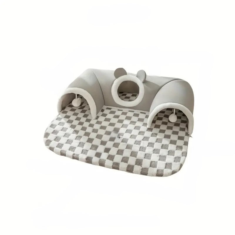 Fabriqué dans une matière confortable et moelleuse, il offre chaleur et sécurité à votre animal. Son design pliable facilite son rangement et son transport. Idéal pour les chats de tous âges, c'est un espace interactif qui aide à lutter contre l'ennui et le stress.