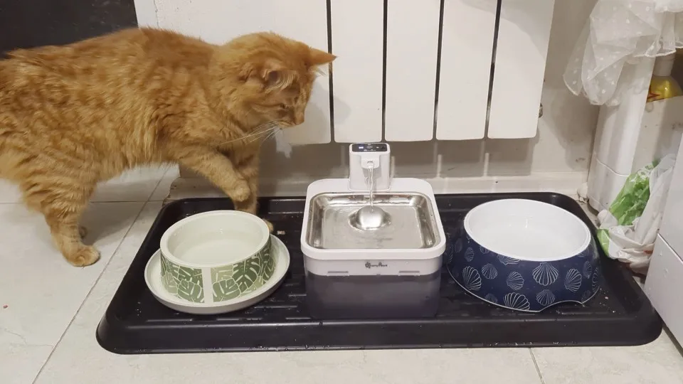 Studies show that cats usually prefer a quiet dining environment where they feel more comfortable and safe. So here comes our DownyPaws Wireless Fountain, free of annoying cables and powered by rechargeable battery, giving you more freedom to set it up where your pets prefer, plus no wires to trip over or get chewed up by those little naughty ones.Wireless-Hydrate AnywhereNo more annoying wires, no more thinking about having outlets. You're able to place a water fountain according to your pet's habits, which may greatly attract them to drink enough water every day.