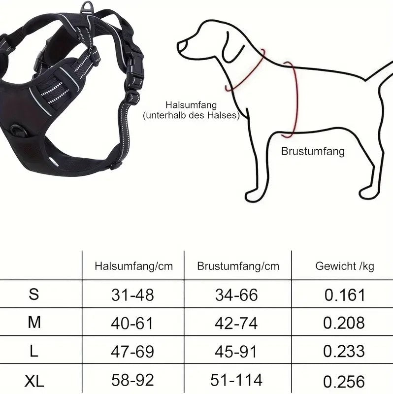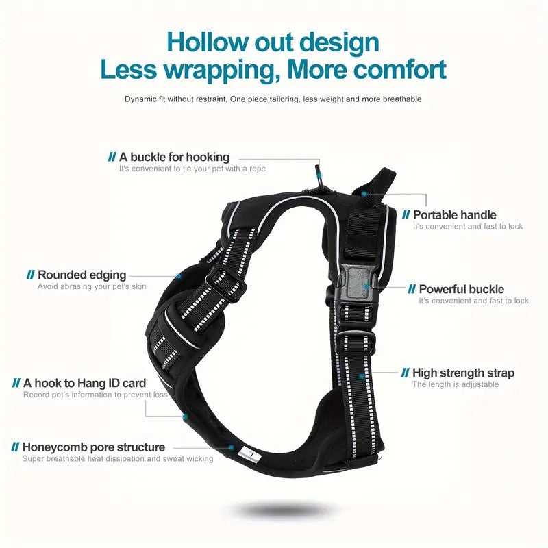 The large dog harness with built-in reflector is a product specially designed for strong, active dogs. It reduces pulling and distributes force better, protecting your pet from injury.