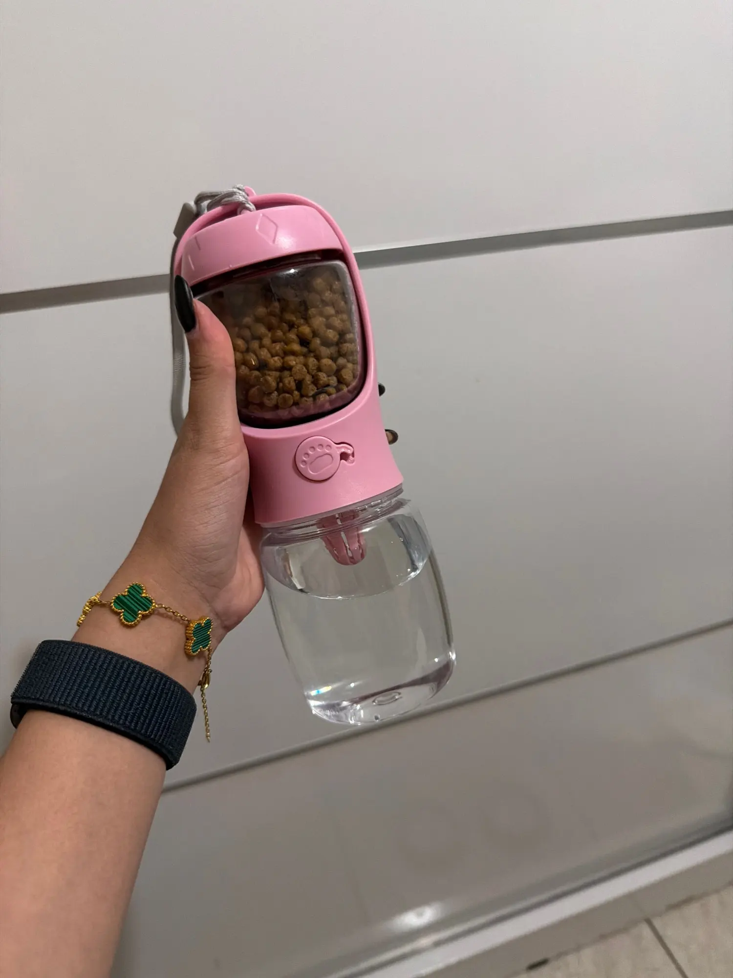 - Compartimento para saco de lixo: A garrafa tem um compartimento conveniente que armazena sacos de lixo, facilitando a limpeza após o seu animal de estimação enquanto você está em movimento e ajudando a manter o ambiente limpo e higiênico.
