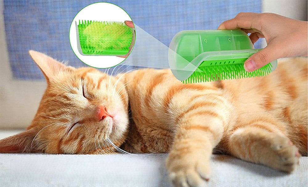 As cerdas massageadoras ativam a circulação e oferecem prazer ao gato ao se esfregar, ajudando a acalmá-lo.