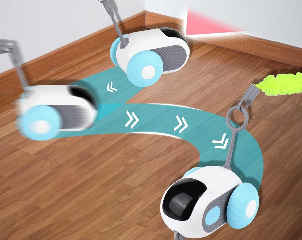 Este carrinho interativo se move sozinho, desvia de obstáculos e atrai a atenção do seu gato com agilidade e criatividade.