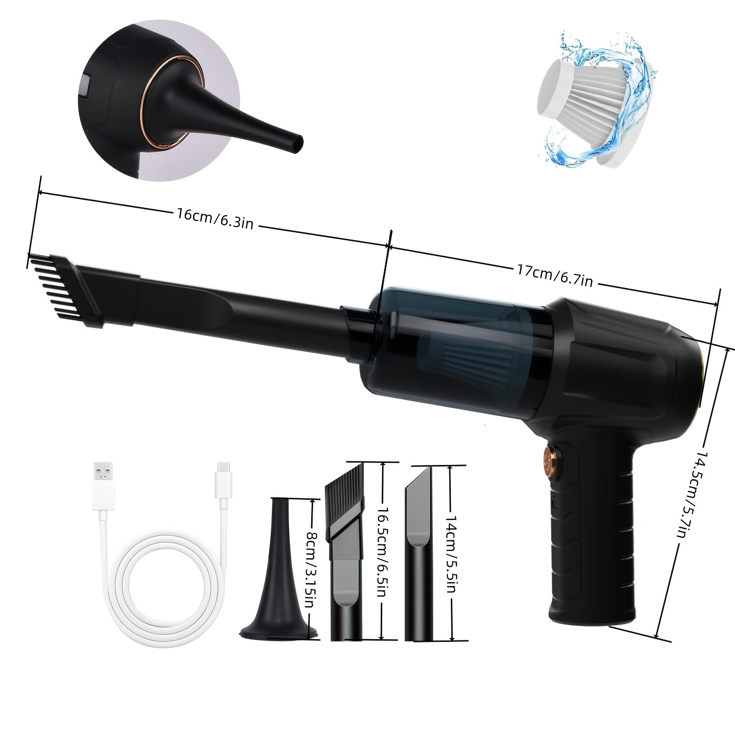 Leve, compacto e sem fios, o mini aspirador portátil é ideal para limpezas rápidas e eficazes. Com bateria recarregável de 3600mAh e carregamento via USB, garante até 12 minutos de autonomia. Perfeito para carro, teclado, sofás e cantos difíceis. Design moderno, prático e silencioso (80dB). Torne a sua rotina de limpeza mais fácil e eficiente!